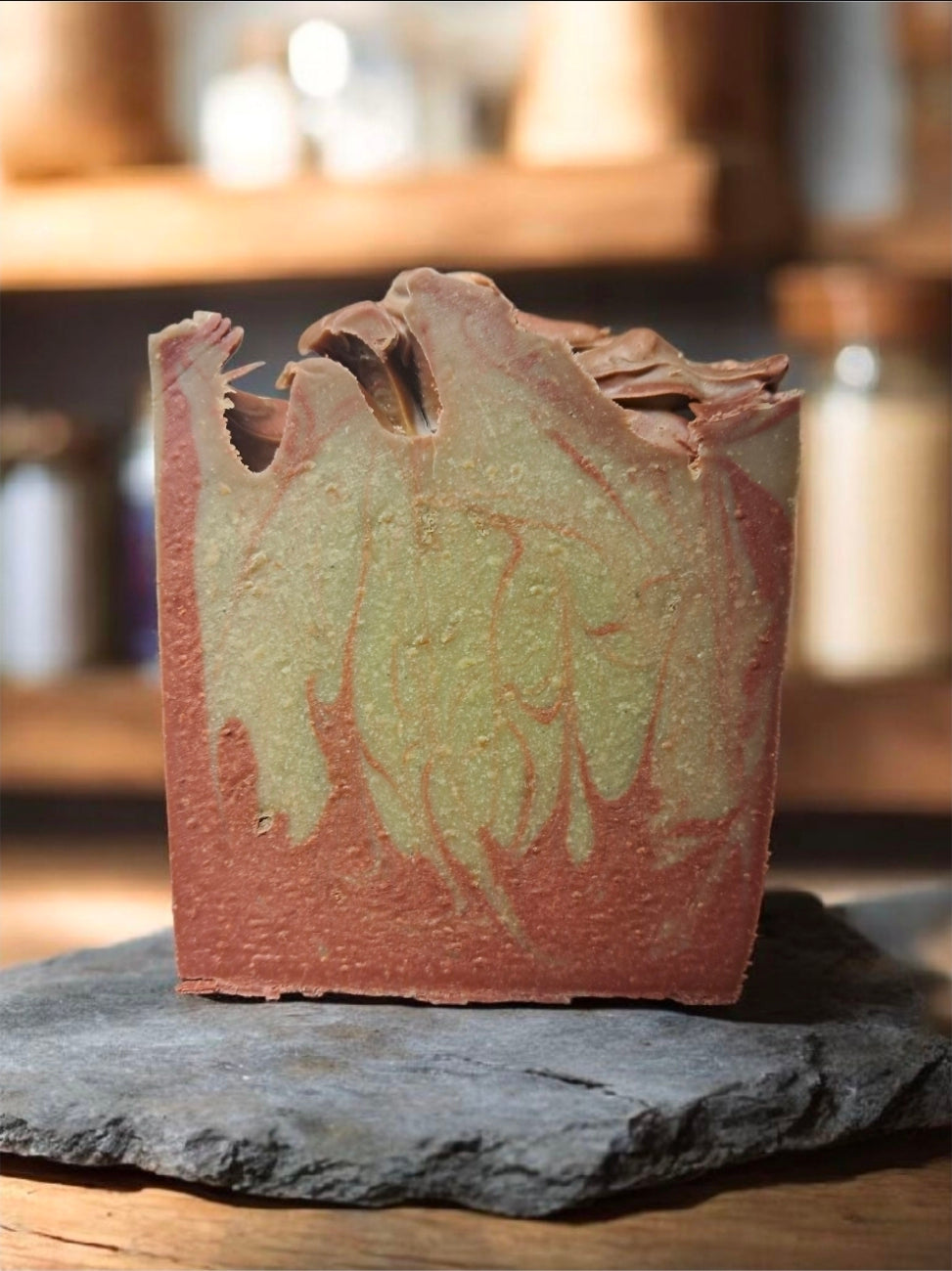 Ingredients: Purified water, Lye, Hemp seed oil, Ostrich oil, Organic virgin coconut oil, Rice bran oil, and Tussah silk,